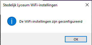 Vervolgens worden de WiFi-instellingen op de achtergrond ingesteld en verschijnt een pop-up dat ze geconfigureerd zijn:
